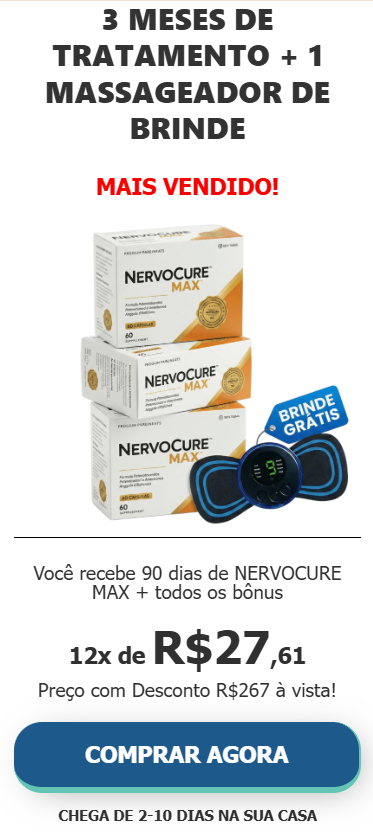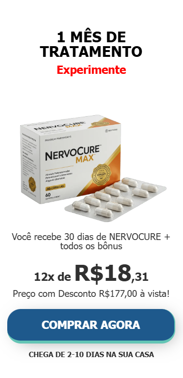 Invista em um produto de qualidade comprovada e diga adeus às dores e desconfortos nos nervos. Com o NERVOCURE MAX, você terá a tranquilidade de estar cuidando bem da sua saúde e recuperando seu bem-estar sem precisar gastar fortunas em tratamentos caros e arriscados.